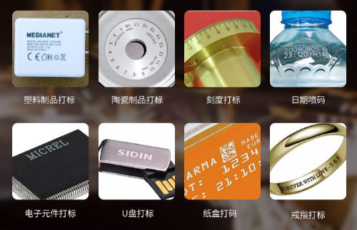 金屬,皮革,線纜,管材,塑料包裝,紙盒,橡膠,各種飲料酒水瓶體。(根據具體情況安裝不同激光器,詳情請關注不同激光打標機應用領域)